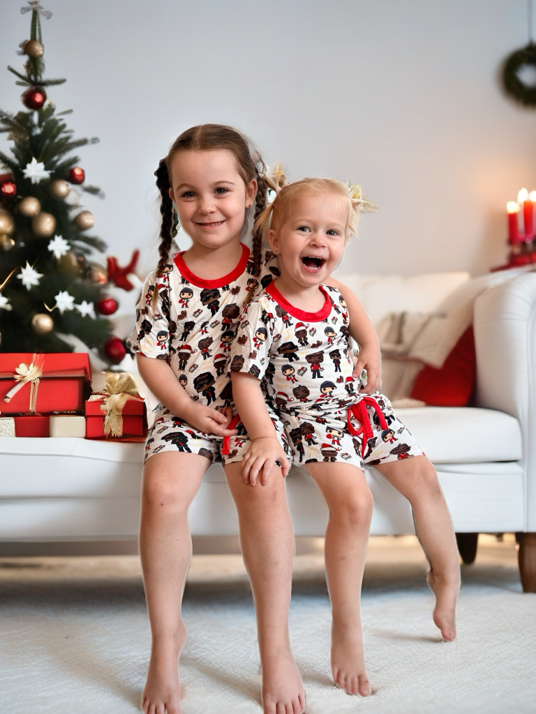 • Functional Features: The shorts are designed with practicality in mind, featuring a functional drawstring for a perfect fit and deep side pockets (for storing holiday snacks or tiny treasures!).
